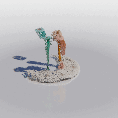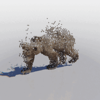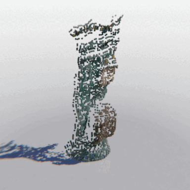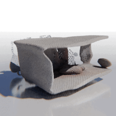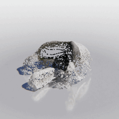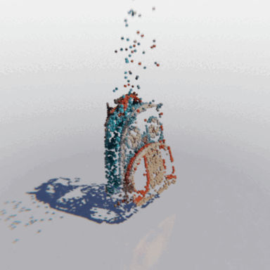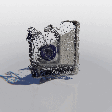 Here we show some examples of using MCC to reconstruct a full 3D object from a single RGB-D image. We show the input image, a "seen" point cloud combining the pixels and depths of each input pixel, and the resulting object predicted by MCC.